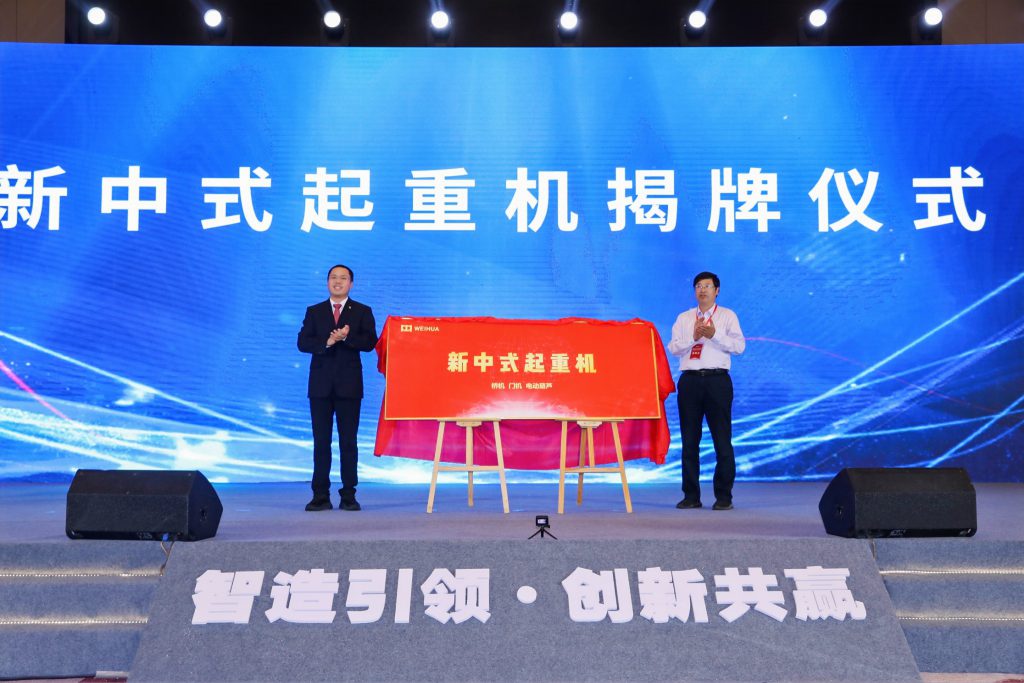 5月28日上午,k1体育集团2021年新品发布暨销售会议。中国重型机械工业协会副理事长、秘书长王继生,k1体育集团董事长韩红安为新中式起重机发布揭牌。新中式起重机的正式命名,体现了中国民族工业和中国企业的自信心,全面开启了中国起重技术超越领跑之路。