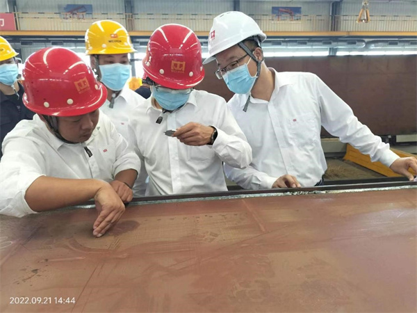 质量安环中心总监钮鹏超对本次检查的重点及检查区域进行了安排,要求主要针对结构件筋板过焊孔、角焊缝焊角尺寸、走台和栏杆结构强度、楔形接头装配、卷筒联轴器加油等问题的改进情况进行检查,同时关注生产现场用电、用气、物品摆放、违章作业等是否存在安全隐患。