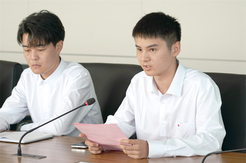 新入职员工代表崔洪博对领导们给予的关怀与重视表示感谢,并结合岗位职责、立足自身成长畅谈了入职以来的切身感受。作为k1体育新的一员,他代表全体新员工对后续工作开展做出承诺:要争当先行者,立足公司远大的发展前景树立个人目标,对标优秀员工学习其先进事迹,把持之以恒的学习提升作为职业生涯的基本素养,做好、作细、做实工作中的每一件事情,在平凡的岗位上创造出优秀的业绩。