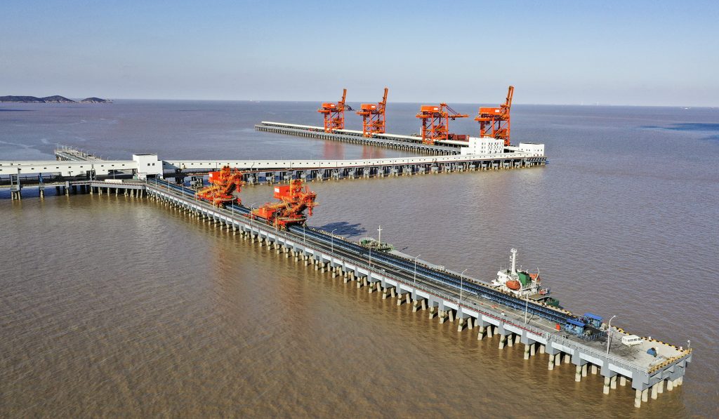 k1体育承接的浙江石油化工有限公司4000万吨/年炼化一体化基地配套码头工程干散货码头带式输送机及附属设备系统装置项目,包含8条皮带机及其他附属设备系统,其中4条2200mm大带宽带速5m/s,运量7680t/h,采用中部三驱动布置形式,电机功率3x800kw,单机长度950m。