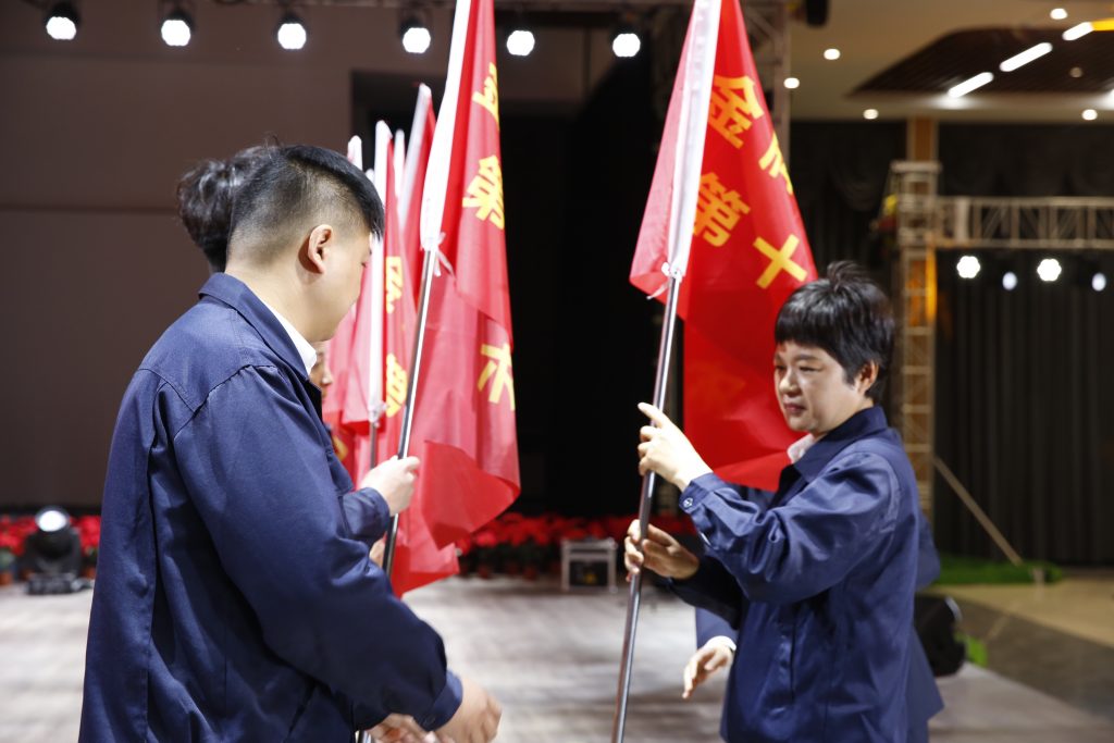 此次训练营共分为12小组,常务副总经理谢保华向训练营分别授营旗和组旗,这十三面责任重大、寓意深远的旗帜,凝聚着班组长求知的决心,凝结着k1体育人奋进的力量。